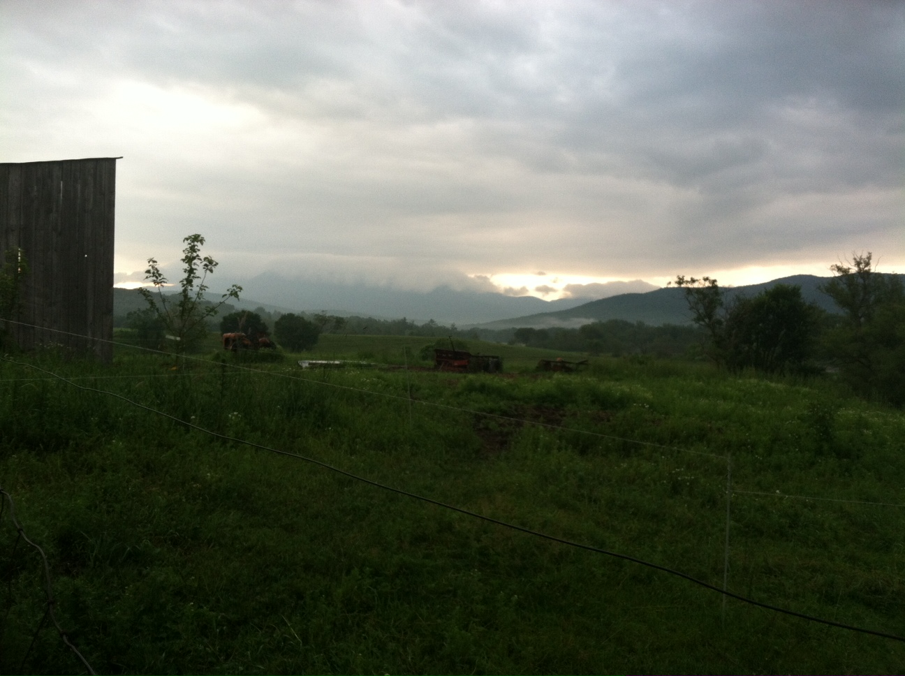 This morning as I struggled to wake up. . .and I don’t even get up at 3 like the boys! I remembered, I wanted to sit out and look at the mountain whether it was raining or not. (We’re desperate here folks). So, I grabbed my coffee, bible, journal and phone (do we go anywhere without those anymore?) and headed to the porch. . .and then the back yard.