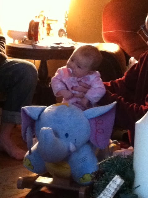 One day while exploring gifts to give to Lilah, I came across these plush rocking animals. One just happened to be Elijah the Elephant. I am serious. Crystal, Elijah’s girl friend, loves elephants. Ok, she is obsessed, in a very healthy way, with elephants. So, when I saw this rocking horse, I thought it was a fitting gift.